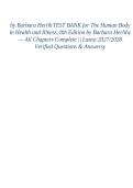 The Test Bank for The Human Body in Health and Illness, 8th Edition by Barbara Herlihy — fully updated for 2027/2028 — provides a comprehensive, chapter‑by‑chapter set of exam‑style questions with verified answers and detailed rationales, aligned with the most recent edition of this foundational anatomy and physiology text. This resource supports learners in nursing, allied health, and basic health sciences by reinforcing core concepts including body organization, cellular function, ti...