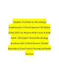The Complete Test Bank for Microbiology Fundamentals: A Clinical Approach, 5th Edition (2026/2027) by Marjorie Kelly Cowan and Heidi Smith delivers a comprehensive collection of chapter-by-chapter exam questions with verified answers and detailed rationales, fully aligned with the latest 5th Edition of this clinically focused microbiology text. Covering microbial structure and function, metabolism, genetics, immunology, infection control, diagnostic microbiology, antimicrobial therapy, and major...