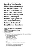 The Complete Test Bank for Lilley’s Pharmacology and the Nursing Process, 11th Edition (2026/2027) by Linda Lane Lilley, Shelly Rainforth Collins, and Julie S. Snyder provides a comprehensive collection of chapter-by-chapter exam questions with verified answers and in-depth rationales, fully aligned with the latest 11th Edition of this leading nursing pharmacology textbook. Covering all major drug classes, pharmacokinetics, pharmacodynamics, medication safety, adverse effects, patient educatio...