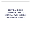 TEST BANK FOR INTRODUCTION TO CRITICAL CARE NURSING 7TH EDITION BY SOLE
