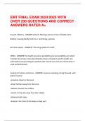 - EMT FINAL EXAM 2024/2025 WITH OVER 200 QUESTIONS AND CORRECT ANSWERS RATED A+ • Examen