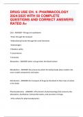 DRUG USE CH. 4: PHARMACOLOGY 2024/2025 WITH 50 COMPLETE QUESTIONS AND CORRECT ANSWERS RATED A+