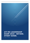 ATI RN LEADERSHIP EXAM 2019 – RETAKE. STUDY GUIDE. LATEST UPDATE
