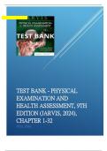 TEST BANK - PHYSICAL EXAMINATION AND HEALTH ASSESSMENT, 9TH EDITION (JARVIS, 2024), CHAPTER 1-32.