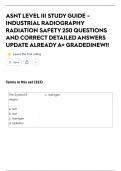ASNT LEVEL III STUDY GUIDE - INDUSTRIAL RADIOGRAPHY RADIATION SAFETY 250 QUESTIONS AND CORRECT DETAILED ANSWERS UPDATE ALREADY A+ GRADED|NEW!!