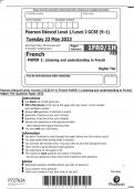 Pearson Edexcel Level 1/Level 2 GCSE (9–1) French PAPER 1: Listening and understanding in French Higher Tier Question Paper 2023