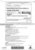 Pearson Edexcel Level 1/Level 2 GCSE (9–1) French PAPER 1: Listening and understanding in French Foundation Tier Question Paper 2023