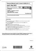 Pearson Edexcel Level 1/Level 2 GCSE (9–1) French PAPER 2: Speaking in French General instructions to the teacher 2023