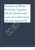 Foundations of Mental Health Care Definitions questions with fully solved answers and well elaborated rationale