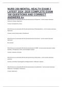 NURS 256 MENTAL HEALTH EXAM 2 LATEST 2024 -2025 COMPLETE EXAM 100 QUESTIONS AND CORRECT ANSWERS A+