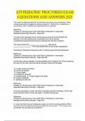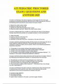 This document includes the complete set of updated questions and accurate answers for the ATI Pediatrics Proctored Exam 4, tailored for the 2025 testing cycle. It covers essential pediatric nursing content such as growth and development stages, common pediatric disorders, immunization schedules, medication administration for children, safety interventions, pain management, and effective family-centered care. Ideal for nursing students preparing for ATI’s pediatric proctored assessments.