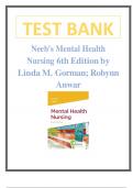 Test Bank for Neeb's Mental Health Nursing 6th Edition By Linda M. Gorman; Robynn Anwar Latest Verified Review 2024 Practice Questions and Answers for Exam Preparation, 100% Correct with Explanations, Highly Recommended, Download to Score A+