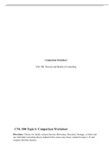 CNL 500 (Theories and Models of Counseling) Topic 6 Assignment: Comparison Worksheet (Obj. 6.1, 6.2, and 6.3)