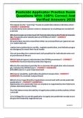 The Pesticide Applicator Practice Exam Questions 2025 resource provides accurate, exam-style questions with 100% correct verified answers to support certification success. Covering pesticide laws and regulations, safety and PPE, label interpretation, application techniques, environmental protection, and integrated pest management, this study guide strengthens exam readiness and builds confidence for successful completion of state pesticide applicator licensing examinations.
