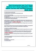 The Pest Ornamental and Turf Grass Control Category 3 Exam Questions 2025–2026 resource provides accurate, exam-style questions with 100% correct verified answers. Covering ornamental plant pests, turf grass insects and diseases, weed identification and control, pesticide selection, application methods, label interpretation, safety practices, and environmental protection, this study guide strengthens exam readiness and supports successful completion of the Category 3 pesticide applicator certi...