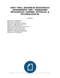 Unit 2: Business Resources | Assignment 2 (P4, P5, P6, P7, M3, M4, D1, D2, D3)