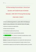 The resource focuses on essential pharmacology concepts tested on ATI exams, including medication classifications, pharm... i x Package deal Examen • 44 páginas • por DrEmma • subido 2026 Vista rápida i x ATI pharmacology • ATI pharmacology ATI Pharmacology Exam 1 & 2 2026/2027 | Actual Exams with Verified Answers & Detailed Rationales | NGN Grade A Study Guide • Por  DrEmma NR 293 Pharmacology Final Exam Test Bank | Verified Questions & Answers with Detailed Rationales | 2026–2027 Chamberlain Nursing | Grade A Study Guide (0) $13.49 0x vendido Prepare for the NR 293 Pharmacology Final Exam 2026–2027 with this comprehensive Chamberlain Nursing test bank. Designed for ADN, BSN, and LPN students, this study guide features verified questions and detailed rationales covering essential pharmacology concepts, drug classifications, mechanisms of action, therapeutic uses, adverse effects, and safe medication administration.