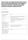 TEXAS FOOD MANAGER NEWEST 2025 ACTUAL EXAM COMPLETE QUESTIONS AND CORRECT DETAILED ANSWERS (VERIFIED ANSWERS) |ALREADY GRADED A+||BRAND NEW!!