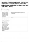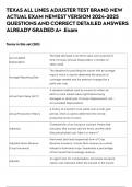 TEXAS ALL LINES ADJUSTER TEST BRAND NEW ACTUAL EXAM NEWEST VERSION QUESTIONS AND CORRECT DETAILED ANSWERS ALREADY GRADED A+ .Exam