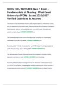 NURS 100 / NURS100:Quiz 2 Exam – Fundamentals of Nursing | West Coast University (WCU) | Latest 2026/2027 Verified Questions & Answers