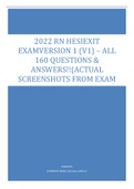 MARSHIKS [COMPANY NAME] [Company address] 2022 RN HESIEXIT EXAMVERSION 1 (V1) – ALL 160 QUESTIONS & ANSWERS!! 2022 RN HESI EXIT EXAM Version 1 (V1) – All 160 Questions & Answers!! (Actual Screenshots from exam taken in April 2022 A+) (All Included!!) (I received 1178 score) #4: I placed the Red dot on the base of the neck on the right side. #20 – check my answer, I wasn’t sure about this one :◆ v #26: check this answer I think I typed the wrong answer here. Double...