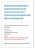 Sewage Treatment Operator Class III Licensing Exam Practice Test 100 Questions And Correct Answers (Verified Answers) Plus Rationales 2026 Q&A | Instant Download Pdf