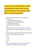 Texas Child-Care Administrator Licensing Exam Practice Questions And Correct Answers (Verified Answers) Plus Rationales 2025/2026 Q&A | Instant Download Pdf