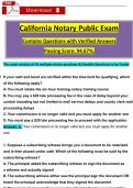 California Notary Public Exam Contains Questions with Verified Answers Passing Score: 94.67%.