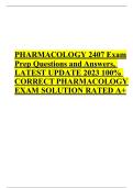 PHARMACOLOGY 2407 Exam Prep Questions and Answers, LATEST UPDATE 2023 100% CORRECT PHARMACOLOGY EXAM SOLUTION RATED A+