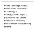 - Oxford Cambridge and RSA Examinations Foundation GCSEBiology A GatewayJ247/01: Paper 1 (Foundation Tier) General Certificate of Secondary Education with correct marking scheme • Examen