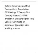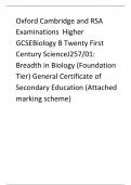 - Oxford Cambridge and RSA Examinations Higher GCSEBiology B Twenty First Century ScienceJ257/01: Breadth in Biology (Foundation Tier) General Certificate of Secondary Education (Attached marking scheme) • Examen