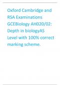 Oxford Cambridge and RSA Examinations GCEBiology AH020/02: Depth in biologyAS Level with 100% correct marking scheme.