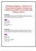 Enerd En esta página, encontrarás todos los documentos, paquetes y tarjetas que ofrece el vendedor eNerd. 875 Documentos 0 Tarjetas de estudio 16 Paquetes Community 5 Seguidores 3 Siguiendo 121 Comentarios recibidos 84 21 7 3 6 1 mes hace • sunshine3100 Gerontology HESI test Questions and complete answers 2 meses hace • PressUP HESI A2 Anatomy AND Physiology Qoestions WITH Correct Answers A+ Score Expert Verified Latest 2 meses hace • PressUP Hesi A2 Basic Math Skills. 2 meses hace • PressUP HESI A2 Biology EXAM 2024 / 2025 QUESTIONS AND ANSWERS 2 meses hace • PressUP Health Assessment - HESI Prep 2 Questions & answers with Rationales,Verified Solutions + Mostrar mas comentarios 892 artículos Todo Documentos Tarjetas de estudio Paquetes Lo más vendido El más nuevo Puntuación ATI predictor exam; PN questions with complete answers, latest update 2024 - 2025 (0) $12.99 0x vendido ATI predictor exam; PN questions with complete answers, latest update i x Package deal Examen • 20 páginas • por eNerd • subido 2025 Vista rápida i x ATI • ATI ATI RN MED SURG 2023 NAXL FINAL EXAM PREPARATION 2024 -2025 UPDATED QUESTIONS AND ANSWERS • Por  eNerd ATI COMMUNITY HEALTH PROCTORED EXAM RETAKE 2023-2024 ACTUAL EXAM 70 QUESTIONS AND ANSWERS (0) $12.99 0x vendido ATI COMMUNITY HEALTH PROCTORED EXAM RETAKE ACTUAL EXAM 70 QUESTIONS AND ANSWERS i x Package deal Examen • 23 páginas • por eNerd • subido 2025 Vista rápida i x ATI • ATI ATI RN MED SURG 2023 NAXL FINAL EXAM PREPARATION 2024 -2025 UPDATED QUESTIONS AND ANSWERS • Por  eNerd ATI Community Health Practice A. Questions and answers. Rated A+ masterpiece (0) $21.99 48x vendido ATI Community Health Practice A. Questions and answers. Rated A+ masterpiece i x Package deal Examen • 19 páginas • por eNerd • subido 2025 Vista rápida i x ATI • ATI ATI RN MED SURG 2023 NAXL FINAL EXAM PREPARATION 2024 -2025 UPDATED QUESTIONS AND ANSWERS • Por  eNerd ATI MEDICAL SURGICAL PROCTORED EXAM 2024 NEWEST EXAM COMPLETE 90 QUESTIONS WITH ANSWERS (0) $12.99 0x vendido ATI MEDICAL SURGICAL PROCTORED EXAM 2024 NEWEST EXAM COMPLETE 90 QUESTIONS WITH ANSWERS i x Examen • 11 páginas • por eNerd • subido 2025 Vista rápida i x ATI • ATI ATI MATERNAL NEWBORN PROCTORED EXAM 2024 WITH NGN ALL 70 QUESTIONS WITH ANSWERS (0) $12.99 0x vendido ATI MATERNAL NEWBORN PROCTORED EXAM 2024 WITH NGN ALL 70 QUESTIONS WITH ANSWERS i x Examen • 82 páginas • por eNerd • subido 2025 Vista rápida i x ATI • ATI ATI Maternal Newborn Proctored Exam (NGN ATI) (0) $12.99 0x vendido ATI Maternal Newborn Proctored Exam (NGN ATI) i x Examen • 31 páginas • por eNerd • subido 2025 Vista rápida i x ATI • ATI ATI Maternal Newborn exam test questions with complete answers (0) $12.99 0x vendido ATI Maternal Newborn exam test questions with complete answers i x Examen • 35 páginas • por eNerd • subido 2025 Vista rápida i x ATI • ATI ATI ENGAGE ADULT MEDICAL SURGICAL RN- ALTERATION IN HEALTHCARE- RN ALTERATION (0) $12.99 0x vendido ATI ENGAGE ADULT MEDICAL SURGICAL RN- ALTERATION IN HEALTHCARE- RN ALTERATION i x Examen • 28 páginas • por eNerd • subido 2025 Vista rápida i x ATI • ATI ATI Dosage Calculation – Critical Care (5 Versions Bundled Together, Questions and Verified Answers (0) $12.99 0x vendido ATI Dosage Calculation – Critical Care (5 Versions Bundled Together, Questions and Verified Answers i x Examen • 34 páginas • por eNerd • subido 2025 Vista rápida i x ATI • ATI ATI CUSTOM MENTAL HEALTH QUIZ ASN (0) $12.99 0x vendido ATI CUSTOM MENTAL HEALTH QUIZ ASN i x Examen • 201 páginas • por eNerd • subido 2025 Vista rápida i x ATI • ATI 1 ... 41 42 43 ...