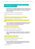 NUR 406-ASSESSMENT QUIZ NURSING CARE OF CHILDREN