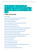 TESTBANK-VARCAROLIS-ESSENTIALS-OF-PSYCHIATRIC-MENTAL-HEALTH-NURSING-3E-2017 Table of Contents Table of Contents Chapter 01: Practicing the Science and the Art of Psychiatric Nursing Chapter 02: Mental Health and Mental Illness Chapter 03: Theories and Therapies Chapter 04: Biological Basis for Understanding Psychopharmacology Chapter 05: Settings for Psychiatric Care Chapter 06: Legal and Ethical Basis for Practice Chapter 07: Nursing Process and QSEN: The Foundation for Safe and Effectiv...