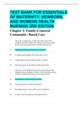 TEST BANK FOR ESSENTIALS OF MATERNITY, NEWBORN, AND WOMENS HEALTH NURSING 3RD EDITION Chapter 2- Family-Centered Community- Based Care 1. The nurse is caring for a 2-week-old newborn girl with a metabolic disorder. Which of the following activities would deviate from the characteristics of family-centered care? A) Softening unpleasant information or prognoses B) Evaluating and changing the nursing plan of care C) Collaborating with the child and family as equals D) Showing respect fo...