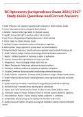 This document provides structured study guide questions with correct and verified answers for the BC Optometry Jurisprudence Exam. It covers provincial laws, professional ethics, regulatory standards, and scope of practice requirements to support thorough and effective exam preparation for the 2026/2027 testing period.