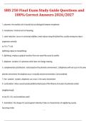 This document contains final exam study guide questions with 100% correct answers for SHS 250 at Arizona State University. It covers the main concepts, theories, and exam-relevant material from across the course and is structured to support thorough and efficient final exam preparation for the 2026/2027 academic year.