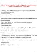 This document is an updated test guide for SHS 367 Exam 2, aligned with the 2026/2027 academic year. It includes exam-focused questions with verified correct answers covering the key theories, concepts, and applied material assessed in Exam 2, making it a reliable resource for structured review and exam preparation.