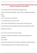 This document provides an SHS 367 final exam review featuring actual exam-style questions with correct answers for the 2026/2027 academic year. It is designed to support effective exam preparation by reviewing key health sciences concepts, course objectives, and commonly tested topics covered in SHS 367.