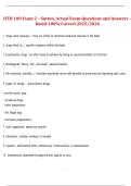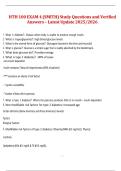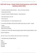This document provides updated HTH 100 Exam 1 study guide questions with fully verified solutions for the 2025/2026 academic year. It covers foundational health education topics typically included in Exam 1, such as wellness concepts, health determinants, disease prevention, stress management, nutrition basics, and behavioral health principles. The verified solutions deliver clear, accurate explanations to support strong comprehension and effective exam preparation.