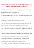 - Activity Director Certification Exam – Current Exam Versions with Study Guide Questions and Answers, Activity Director Certification Program 2026/2027 – comprehensive exam preparation material • Examen
