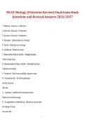 This document contains comprehensive MCAT Biology final exam study questions with thoroughly revised answers based on the Princeton Review curriculum. It covers all major biology topics tested on the MCAT and is designed to support effective content review and exam-style practice for the 2026/2027 test cycle.