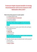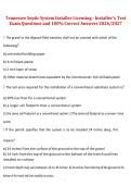 This document provides installer’s test exam questions with 100% correct and verified answers for the Tennessee Septic System Installer Licensing exam. It covers state regulations, system components, soil and site evaluation, installation procedures, safety standards, and compliance requirements to support confident preparation for the 2026/2027 licensing exam.