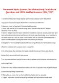 This study guide contains a complete set of exam-focused questions and 100% verified answers for the Tennessee Septic Systems Installation exam. It covers essential topics such as system design, soil evaluation, percolation testing, setback requirements, installation procedures, inspections, and Tennessee health department regulations for the 2026/2027 testing period.