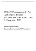 COM3707 Assignment 2 (Part A) Semester 2 Memo (COMPLETE ANSWERS) Due 25 September 2025