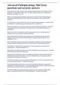 Advanced Pathophysiology Mid-Term questions and accurate answers