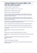 College Algebra Formulas (Math 110)-with accurate answers -