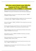 Infection control dental exam, Infection Control ACTUAL UPDATED QUESTIONS AND CORRECT ANSWERS