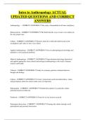 Intro to Anthropology ACTUAL UPDATED QUESTIONS AND CORRECT ANSWERS